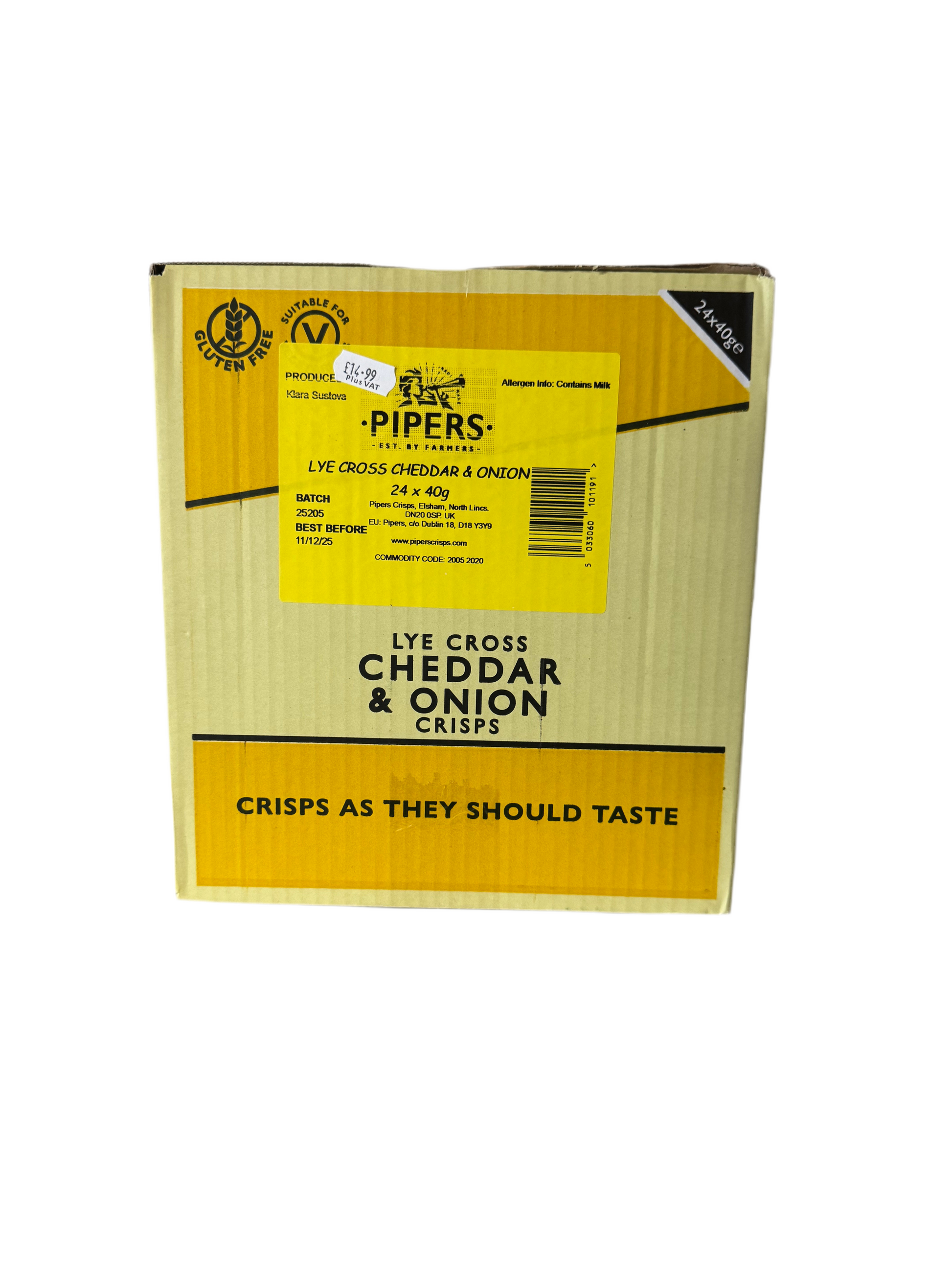 Pipers Crisps are crafted by farmers who believe snacks should be bold, simple, and full of flavour. Each box includes 24 bags (40g each) in a variety of mouth-watering flavours, all made with quality ingredients and cooked to a perfect crunch. Gluten free, suitable for vegans, and guaranteed to deliver crisps just as they should taste